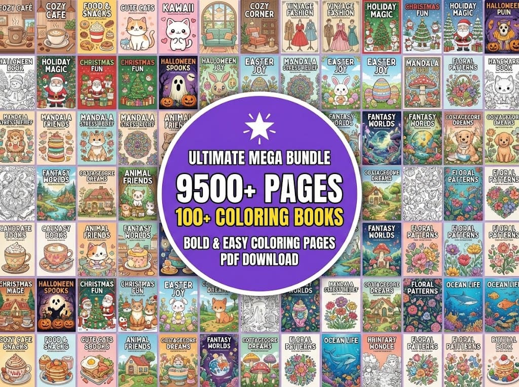 Are you looking for an endless source of relaxation and artistic expression? Unleash your creativity with this massive digital 9500+ Mega Coloring Book Bundle, featuring over 9,500 unique coloring pages across 100+ themed books! Whether you’re a coloring beginner looking for a new hobby or a seasoned enthusiast seeking intricate designs, this cozy collection offers endless joy, calm, and imagination for both kids and adults.