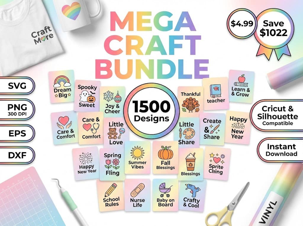 Don’t miss out on these massive savings. Download the bundle today and start creating with the 1500+ Mega Craft Bundle SVG!