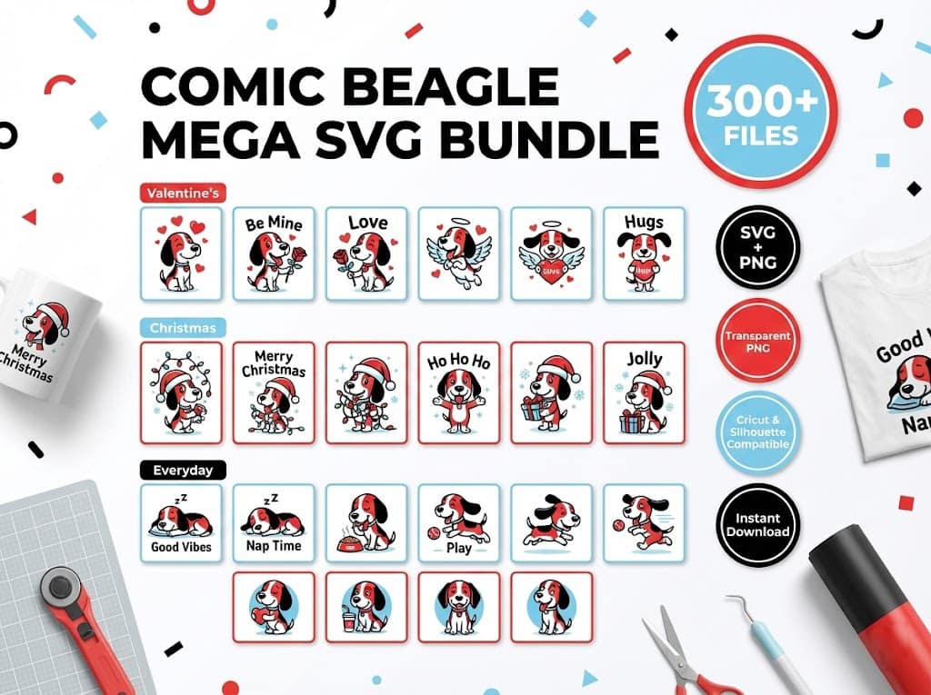 We know that variety is essential for crafters. That is why this Cartoon Beagle SVG Bundle includes hundreds of unique poses and themes. Instead of buying single files for Valentine’s Day or Christmas, you get a year-round supply of cuteness in one download.