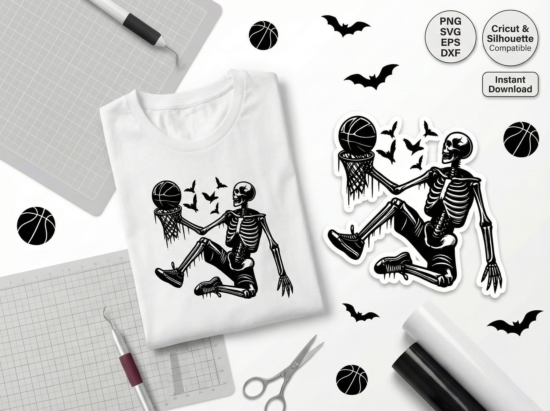 If you run a custom apparel business or sell at craft fairs, this Patriotic Skeleton Basketball SVG is a high-impact addition to your catalog. Edgy sports designs combined with patriotic themes are best-sellers.