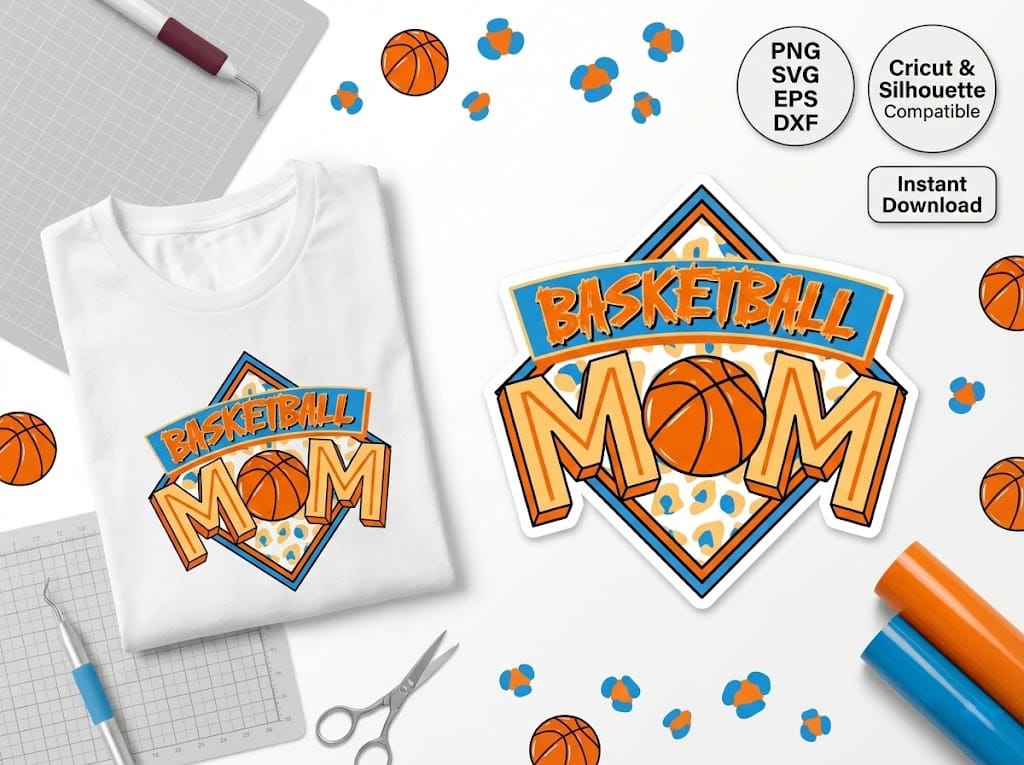 The versatility of this bundle is unmatched. It includes multiple file formats (SVG, PNG, DXF, and EPS), ensuring that you can use it for various crafting techniques, from vinyl cutting to sublimation. You can resize the Retro Basketball Mom SVG to fit a small hat decal or a large stadium blanket without losing any quality.