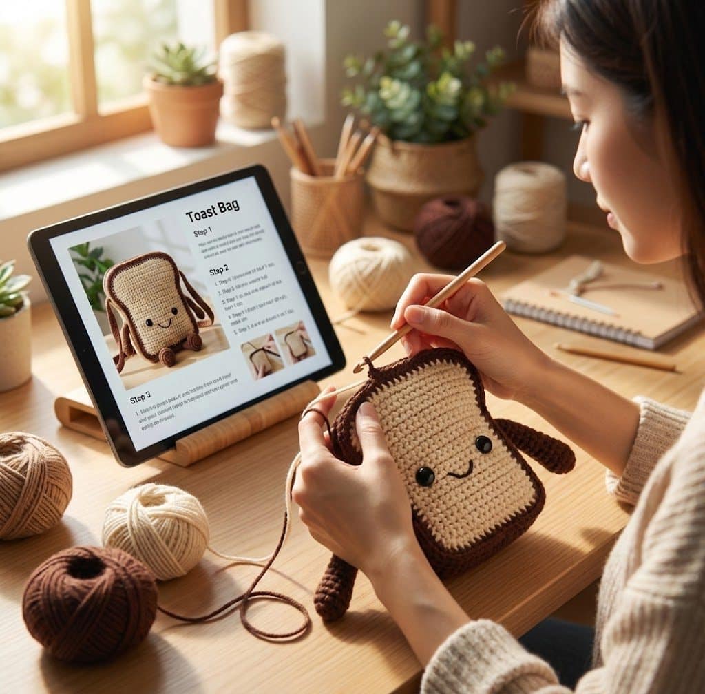 We know that functional crochet needs to be durable. That is why this Toastie Bread Bag Crochet Pattern has been carefully designed with structure in mind. The pattern guides you through creating the “crust” and the soft white center, ensuring the bag holds its shape even when empty.